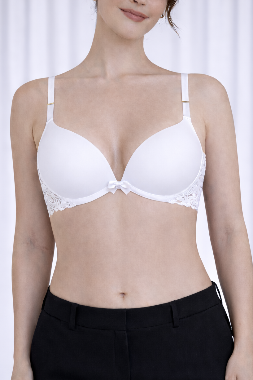 Experimente a combinação perfeita de praticidade e elegância com nosso sutiã branco com bojo liso.